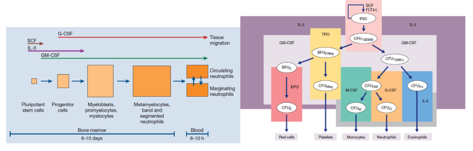 Il favorise la différencia tion des cellules souches myéloïdes en CFUGEMM2 puis la transformati on de ces derniers en plaquett es, neutrophiles, éosinophiles, basophiles, monocytes et macrophages.
