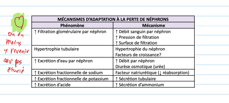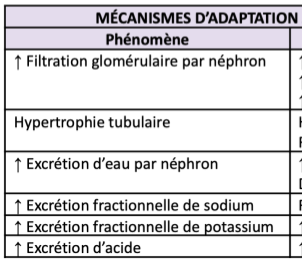 Quels sont les phénomènes d’adaptation du rein suite à la perte de néphron?