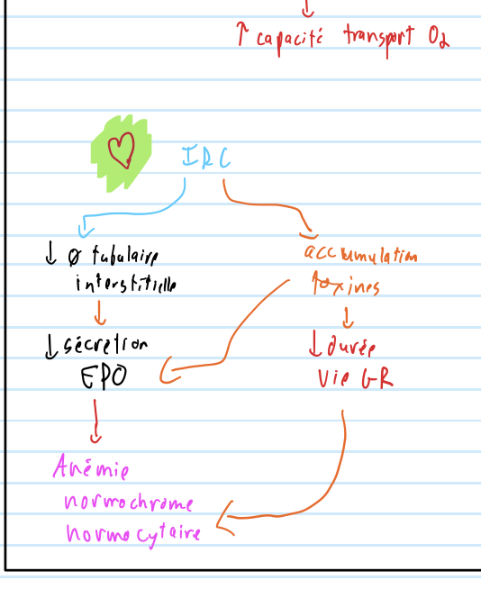 Explique le mécanisme dans la IRC qui mene a anémie normochrome normocytaire