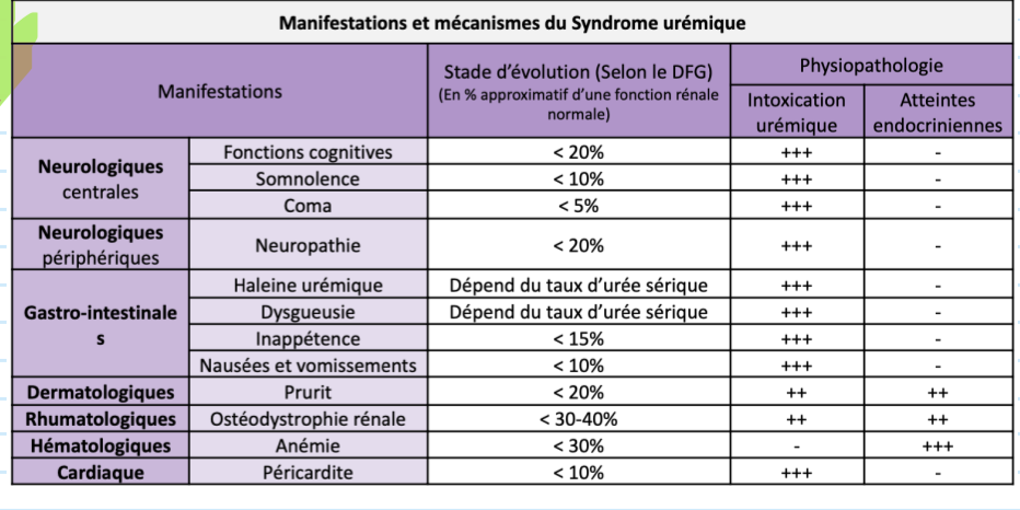 Donne les différents systèmes qui vont être touchés dans le syndrome urémique?