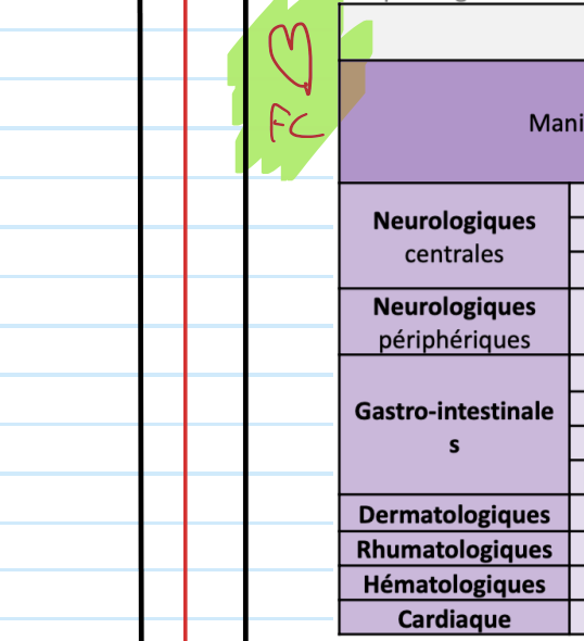 Donne la physiopathi pour les différentes manifestations