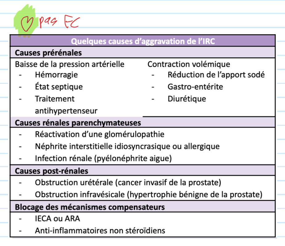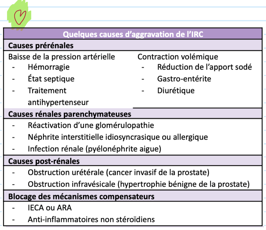 Quels sont les 4 grandes catégories de causes aggravation IRC?