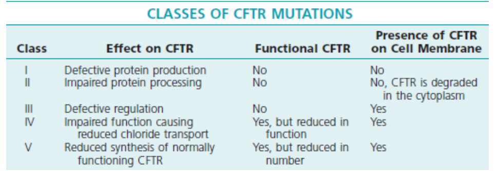 Explique c’est les différentes classe de mutations de CFTR?