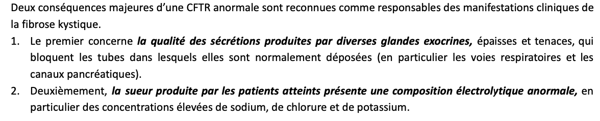 Quelles sont les 2 conséquences majeurs d’une CFTR anormale?
