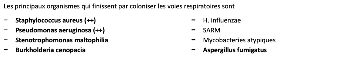 Quels sont les principaux bactérie qui peuvent infecter les VR d’un patient FK?