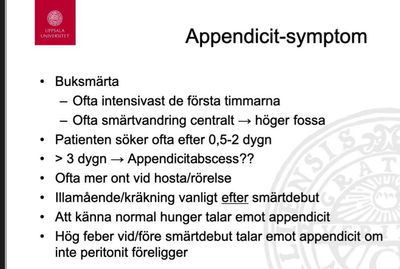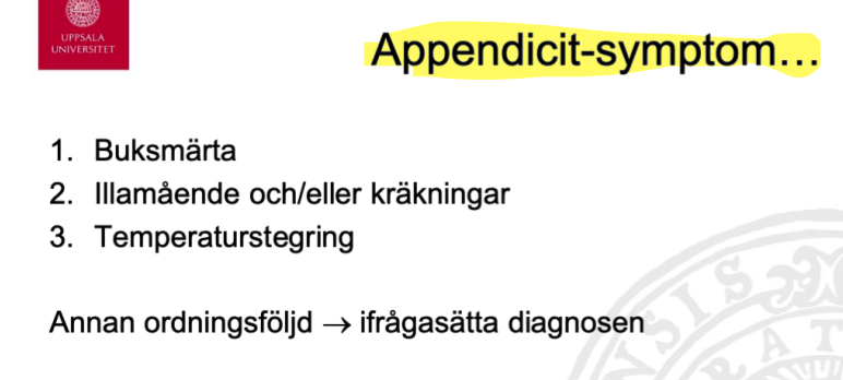 Vilka symtom är klassiska vid en appendicit avseende