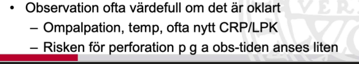Om appendicit är oklart kan man med fördel observera patienten 6 timmar och se hur det utvecklar sig.