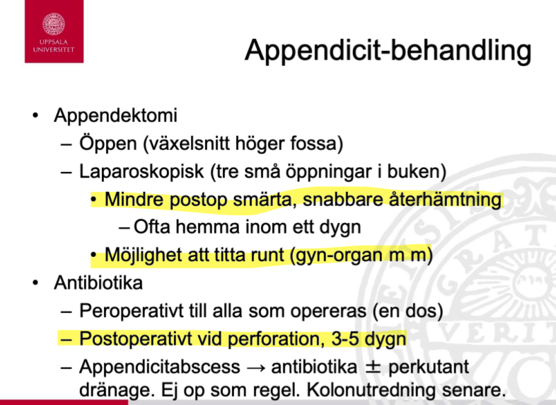 Vid appendicit genomför s alltid appendektomi.