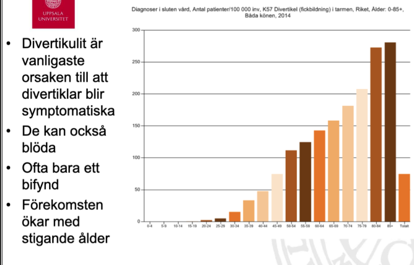 Divertikulit är vanligaste orsaken till att divertiklar (divertikulos) blir symtomatiska.