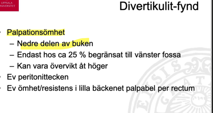 Vad är det vanligaste fyndet vid divertikulit i bukstatus?