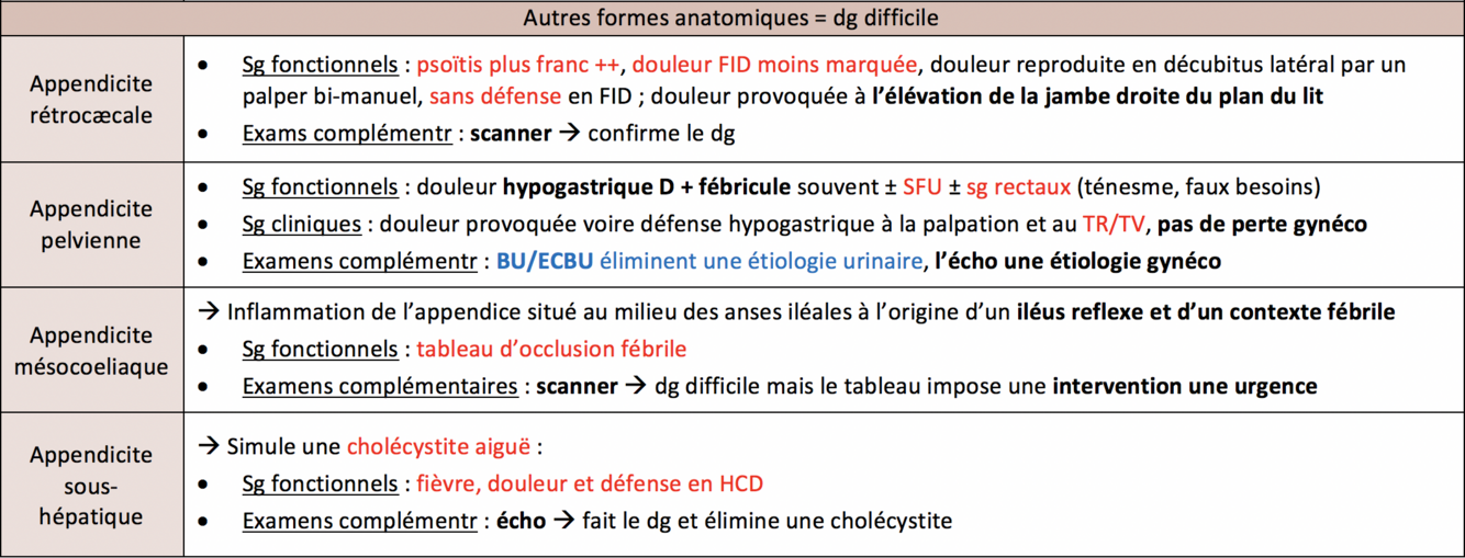 Autres formes anatomiques de l’appendicite