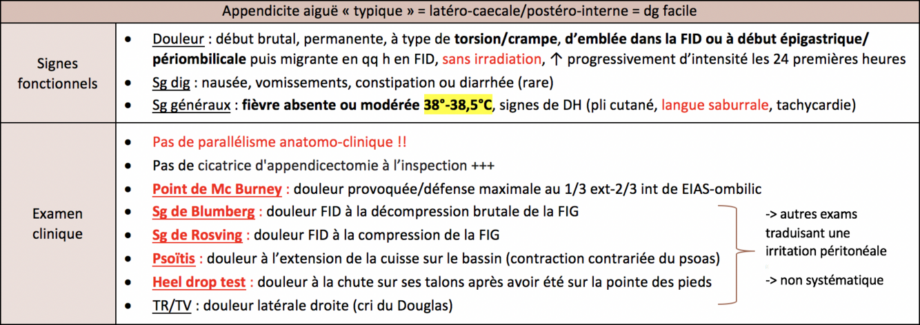 Clinique de l’appendicite aiguë typique