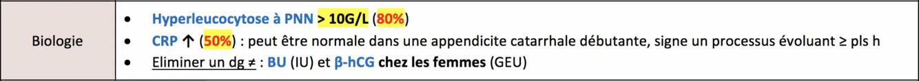 Biologie à faire si suspi d’appendicite