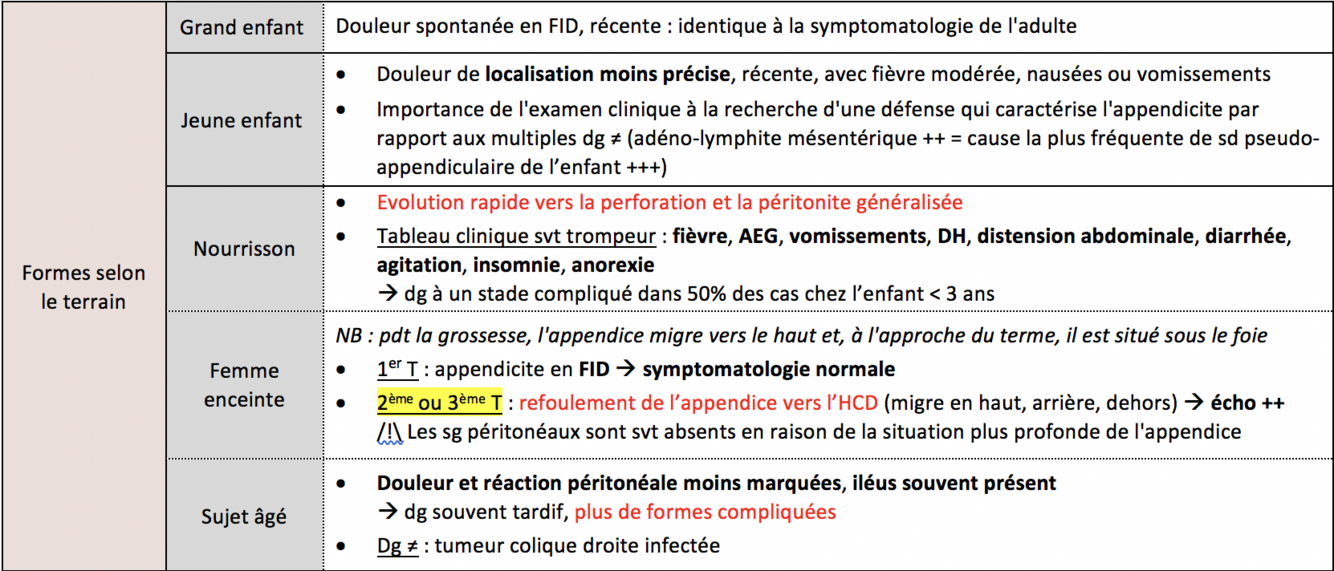 Formes d’appendicite selon le terrain