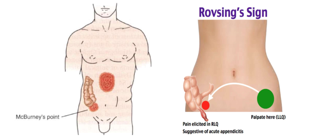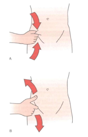Pinch skin and pull away from peritoneum, pain felt on recoil on release
