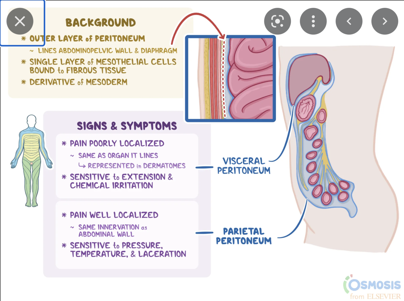 2 - contents of LIF push into RIF distending RIF parietal peritoneum