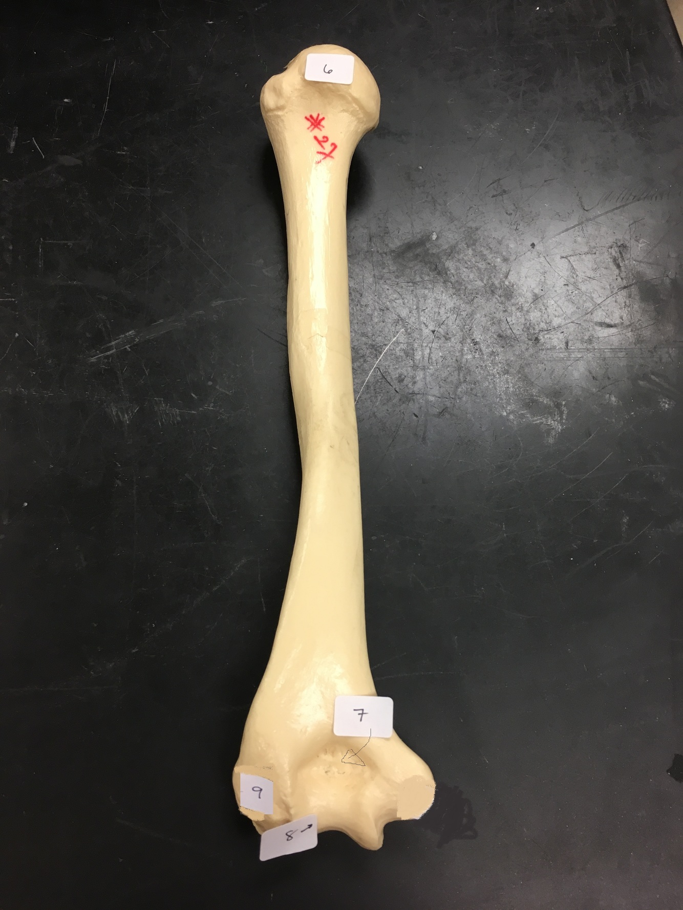 12- Olecranon- This is the knob-like projection of the proximal end; the “elbow”.