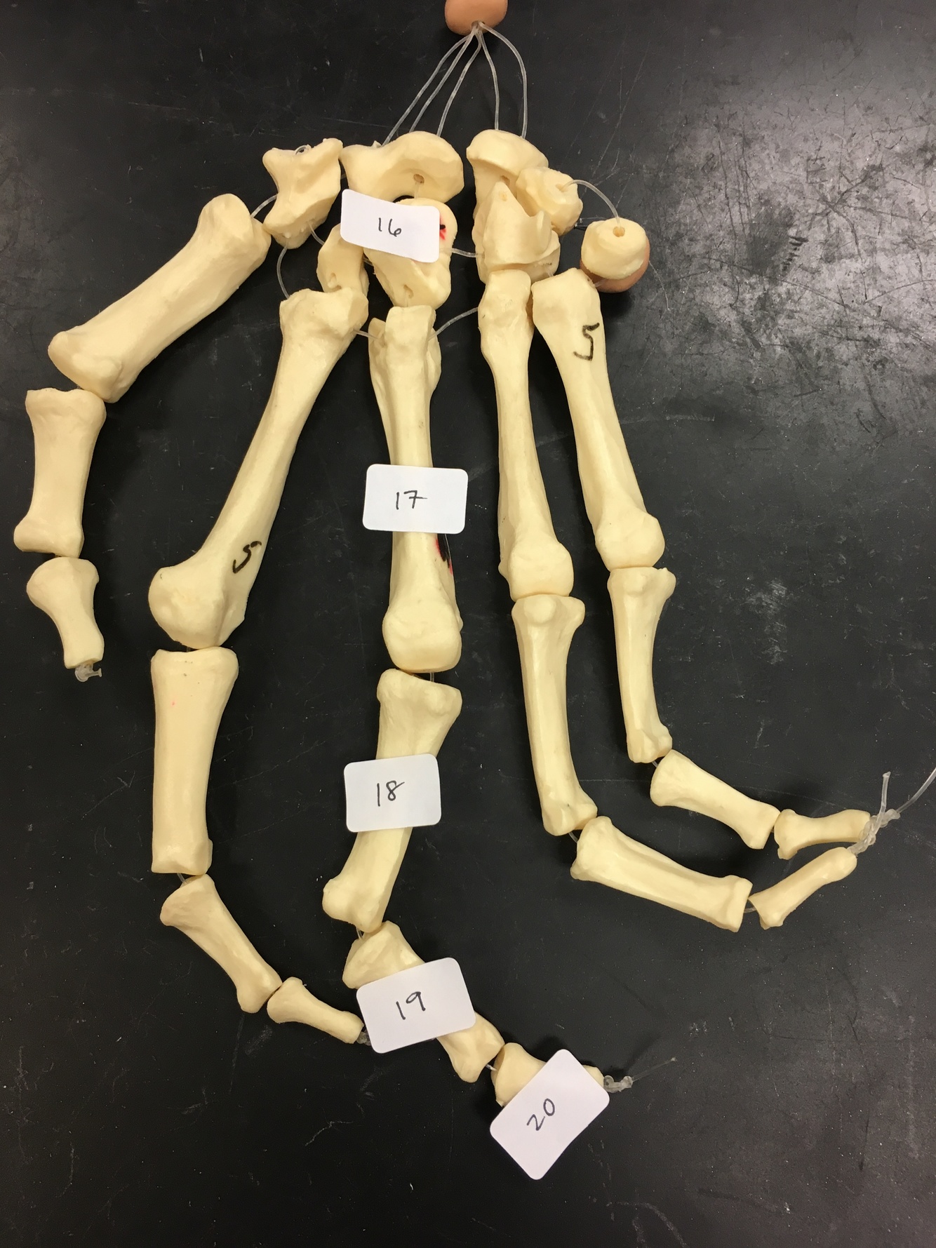 Note: when naming a phalanx, you should include location (proximal, middle, distal) and number (1-5). For example, “the middle phalanx of the 4th digit” or the “distal phalanx of the 2nd digit”, etc.