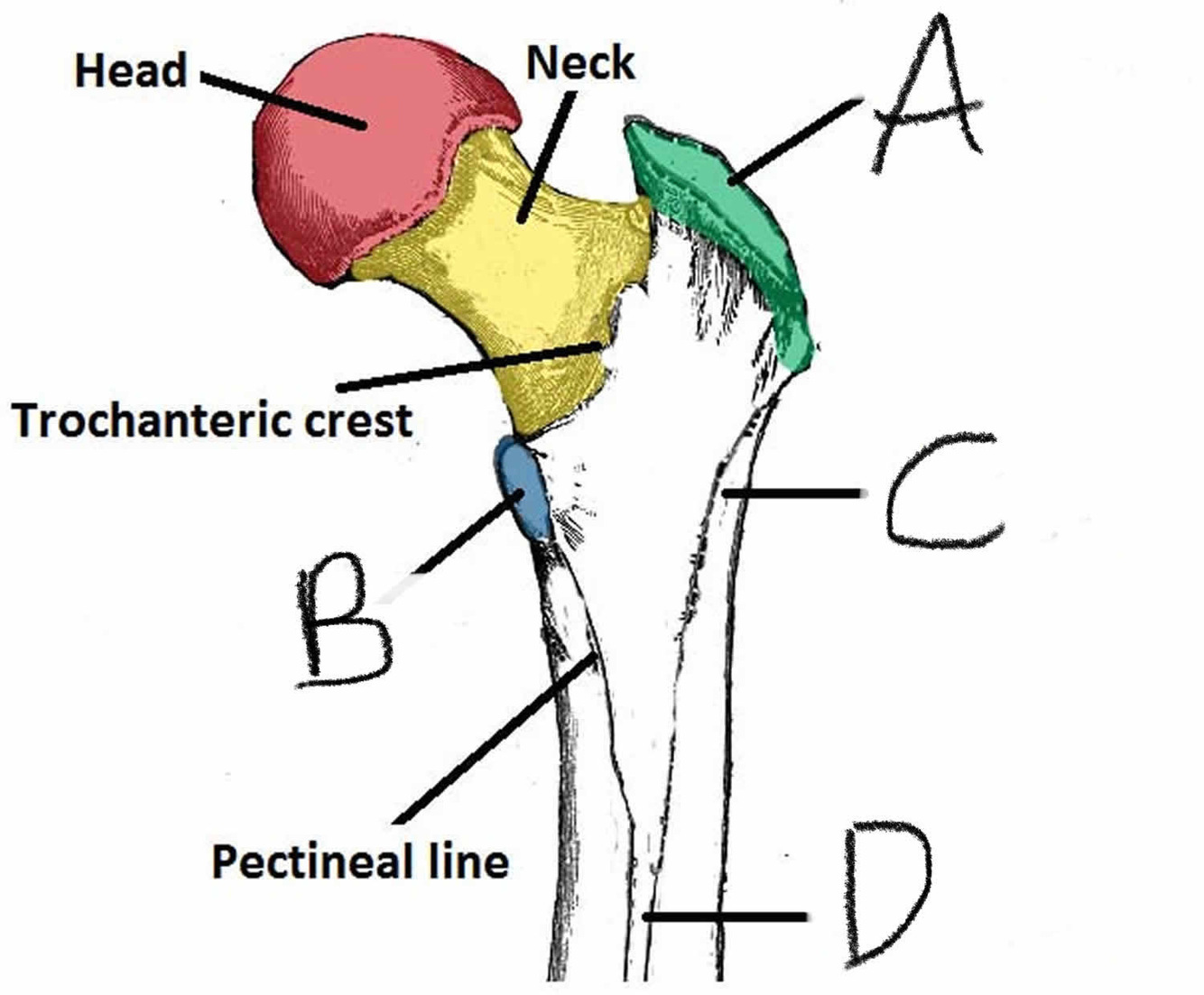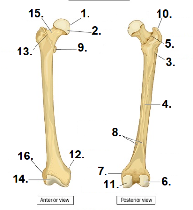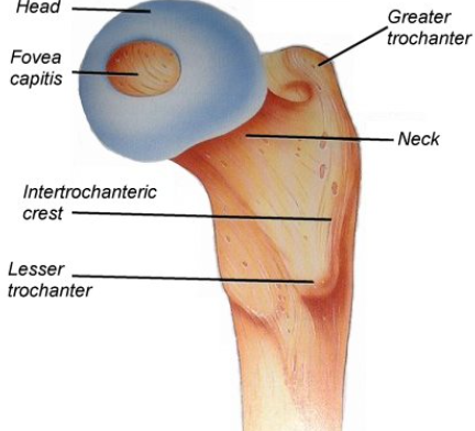 identify the blue part of this femur