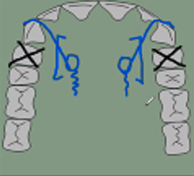 13 and 23, palatal finger spread + guards, 0.5mm HSSW (hard, can get soft not in ortho)