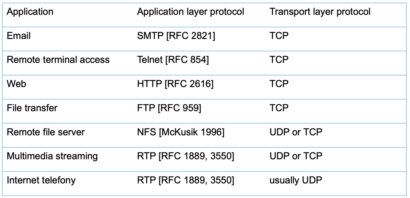 Beispiele für Anwendungen (Applications) und die benutzten transport protocols