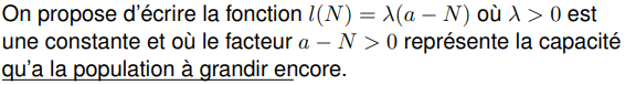 k devient une fonction de N soit k = l(N), avec a le nombre d’individus que peut nourir le milieu et lambda une constante