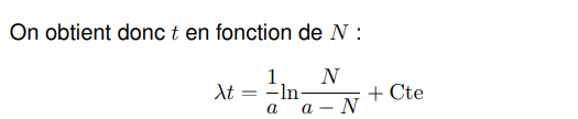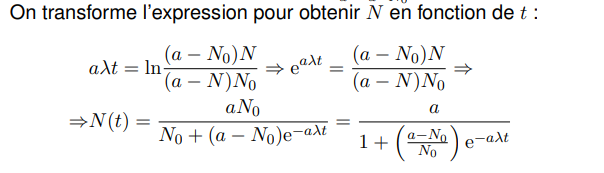 Comment avoir N en fonction de t à partir de cette nouvelle formule ?