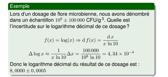 Exemple avec incertitude après logarithme décimal