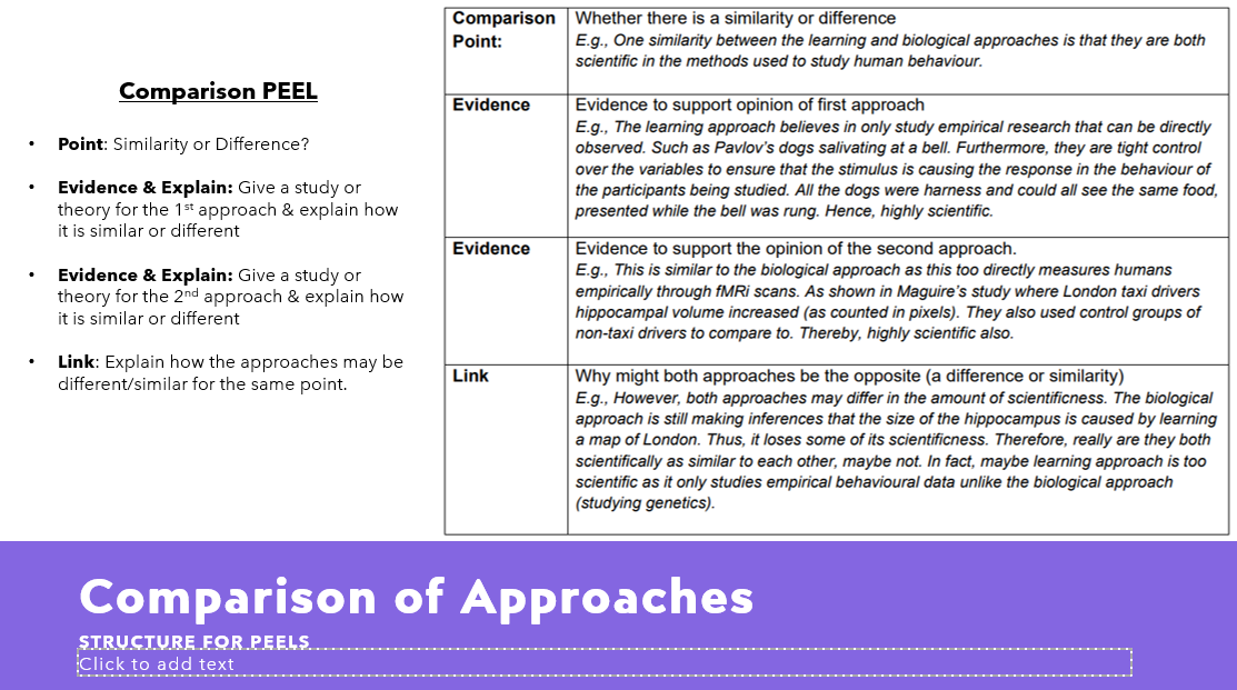 The structure of PEELs for Comparison of Approaches A03 evaluation