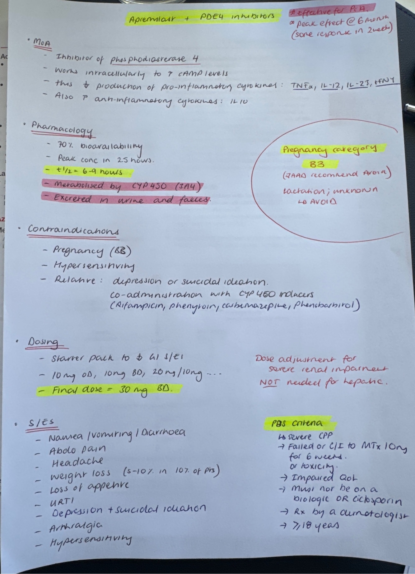 ○ Co-administration with potent CYP450 inducers (rifampicin, phenobarbital, carbamazepine, phenytoin, may diminish apremilast levels)
