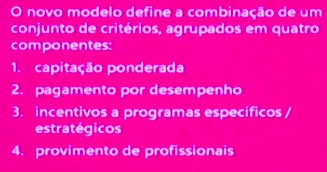 a nova proposta, que divide especialistas, tem como principal norteador da distribuição da verba a produtividade do serviço de saúde e o número de pessoas cadastradas.