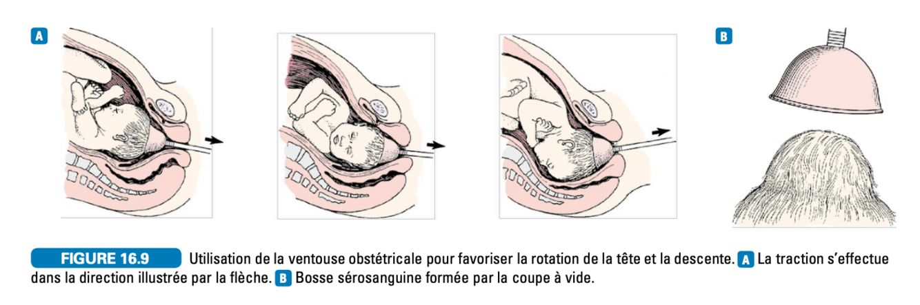 une coupe à vide est posée sur la tête du fœtus, créant une pression négative