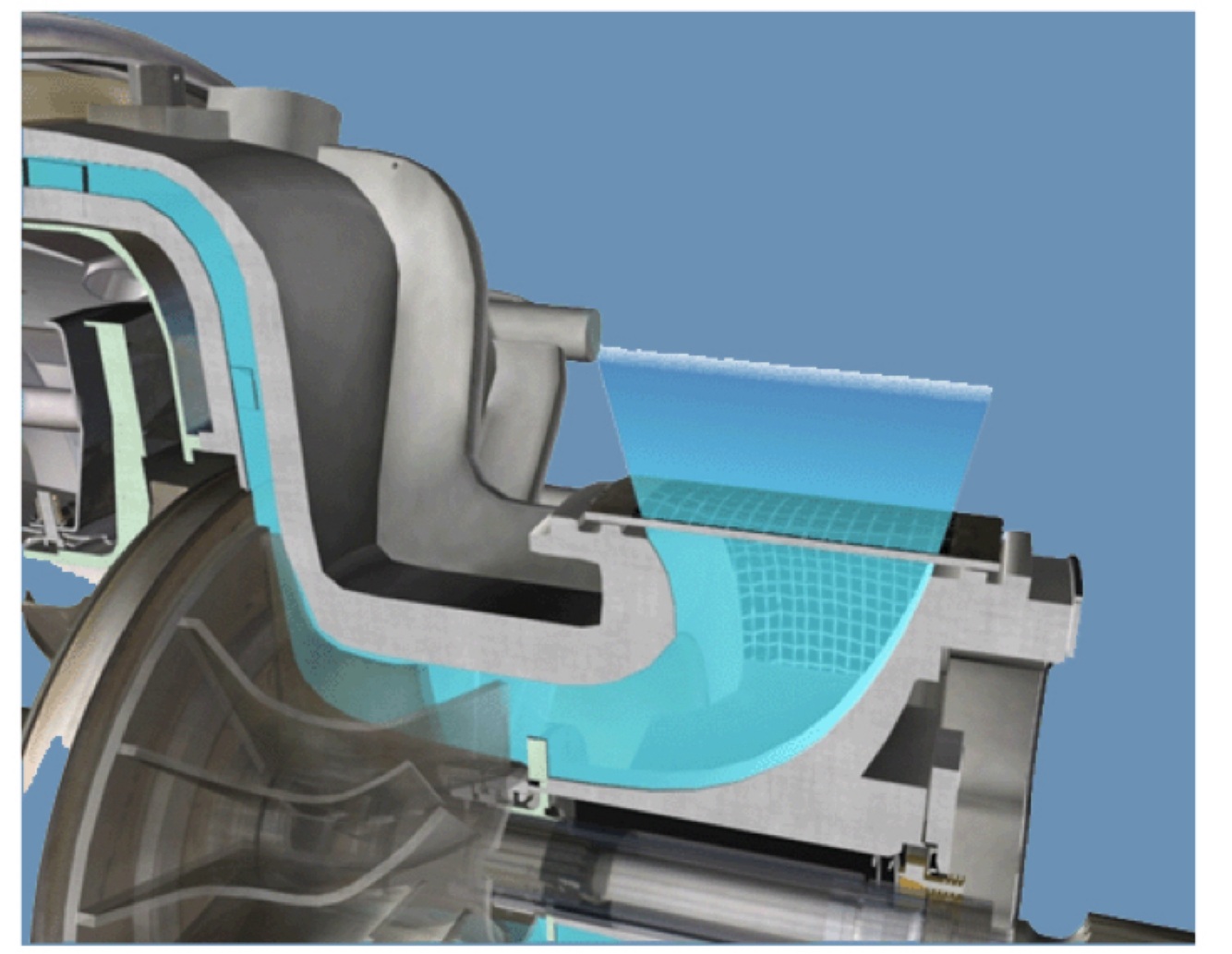 (2) The compressed air exits the impeller, it enters a diffuser, which changes the direction of the airflow and sends it to the combustor.