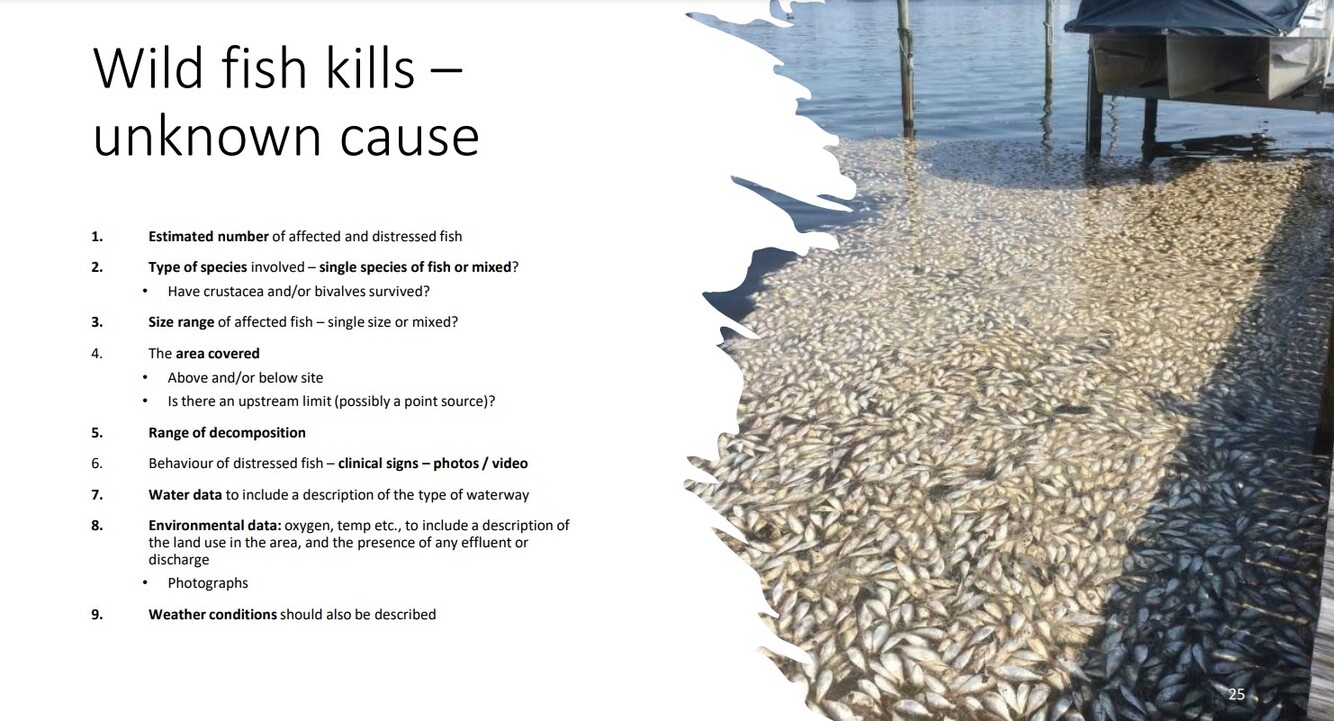 Where would you go to get Veterinary information on how to dispose of dead fish from a nationally significant aquatic disease ?