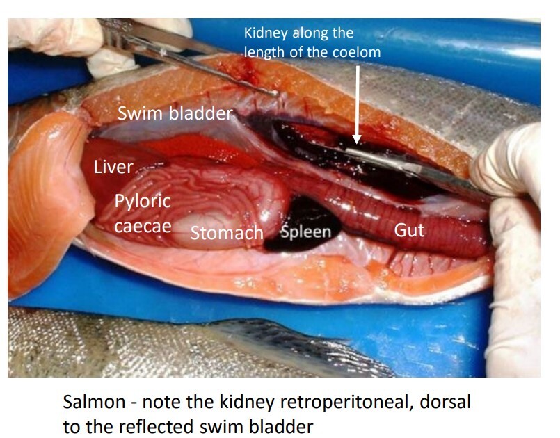 - preferable deflate the swim bladder to ensure penetration of the kidney
