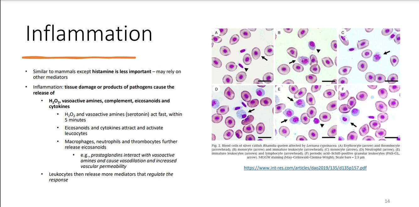 - fish scars in contrast to mammals chronic inflammation in fish may appear with abundant pigmentation.