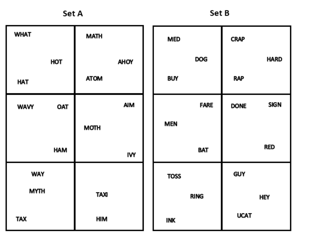 B: All words contains at least one letter which is not symmetric when halved vertically