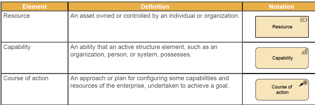define the strategy elements and their notation