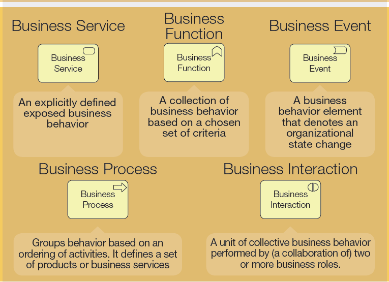 Define the behavour elements of the business layer and their notation