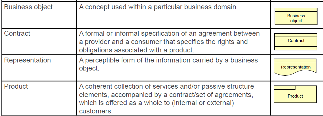 Define the passive elements of the business layer and their notation