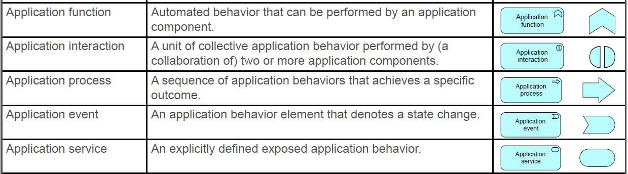 Define the behaviour elements of the application layer and their notation
