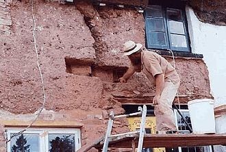Walling material of clay mixed with straw
