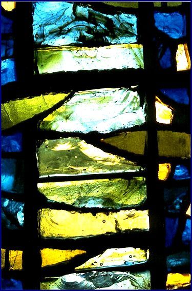 A stained-glass techinque invented in the mid-20th century,setting large, thick pieces of cast glass into a frame of reinforced concrete or epoxy resin