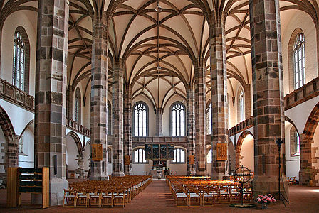 A church with nave and aisles of approximately equal height
