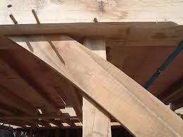 Long straight braces in a timber roof, passing across other members of the truss