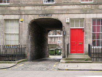 Open-ended ground-level passage through a building