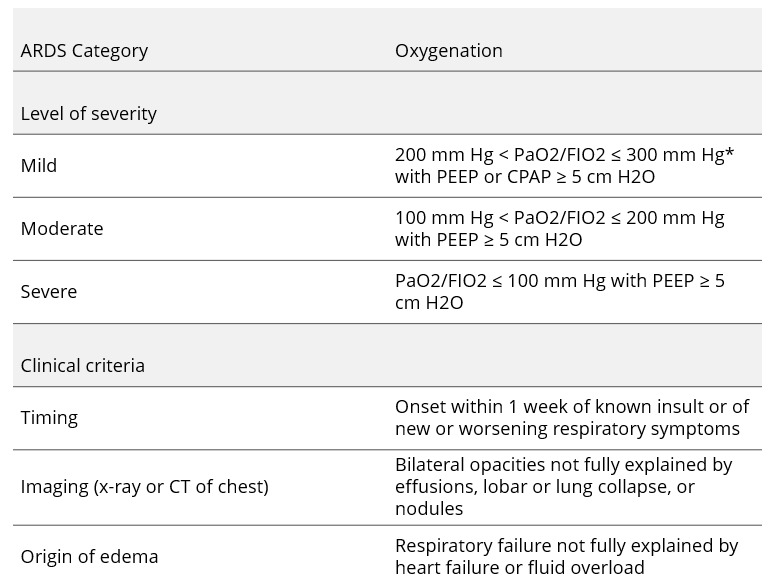 PaO2/FiO2 = ratio of partial pressure of O2 in the blood vs fractional inspired air