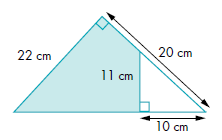 Area of the large triangle: 22 x 20 ÷ 2 = 220cm2