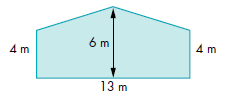 Triangle on top: 2 x 13 ÷ 2 = 13cm2