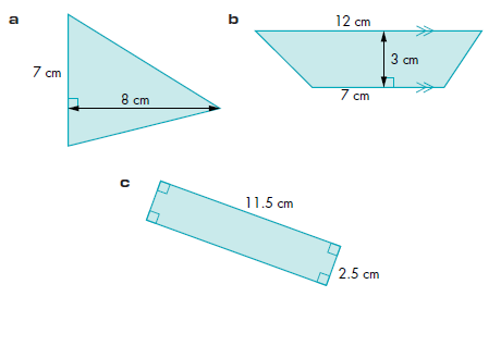 Triangle: 10 x 20 ÷ 2 = 100cm2